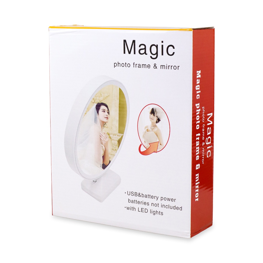 Tenaga Baterai atau dengan Kabel USB Agar cermin magic dapat digunakan sebagai bingkai foto, Anda hanya membutuhkan 3 buah baterai AA agar LED dapat menyala sehingga cermin berubah fungsi menjadi bingkai foto. Anda pun bisa menyalakan lampu LED pada cermin ini dengan mencolokkan kabel USB DC pada power bank, charger smartphone dan lainnya.