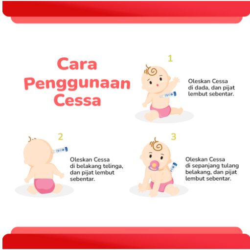 Cessa Fever Drop KEUNGGULAN - Murni Terbuat Dari 100% Bahan Alami - Aman Untuk Kulit Bayi - Tidak Ada Bahan Kimia Yang Dikonsumsi - Meredakan Demam atau Panas Pada Bayi - Menghindari Kejang Karena Suhu Tubuh Tinggi - Menyamankan Bayi Saat Demam CARA PEMAKAIAN - Oleskan dan Pijat Lembut Disepanjang Tulang Belakang Bayi - Oleskan dan Pijat Lembut Pada Area Tengkuk Bayi - Oleskan dan Pijat Lembut Pada Area Lipatan Tubuh Bayi - Oleskan Pada Bagian Telinga Belakang