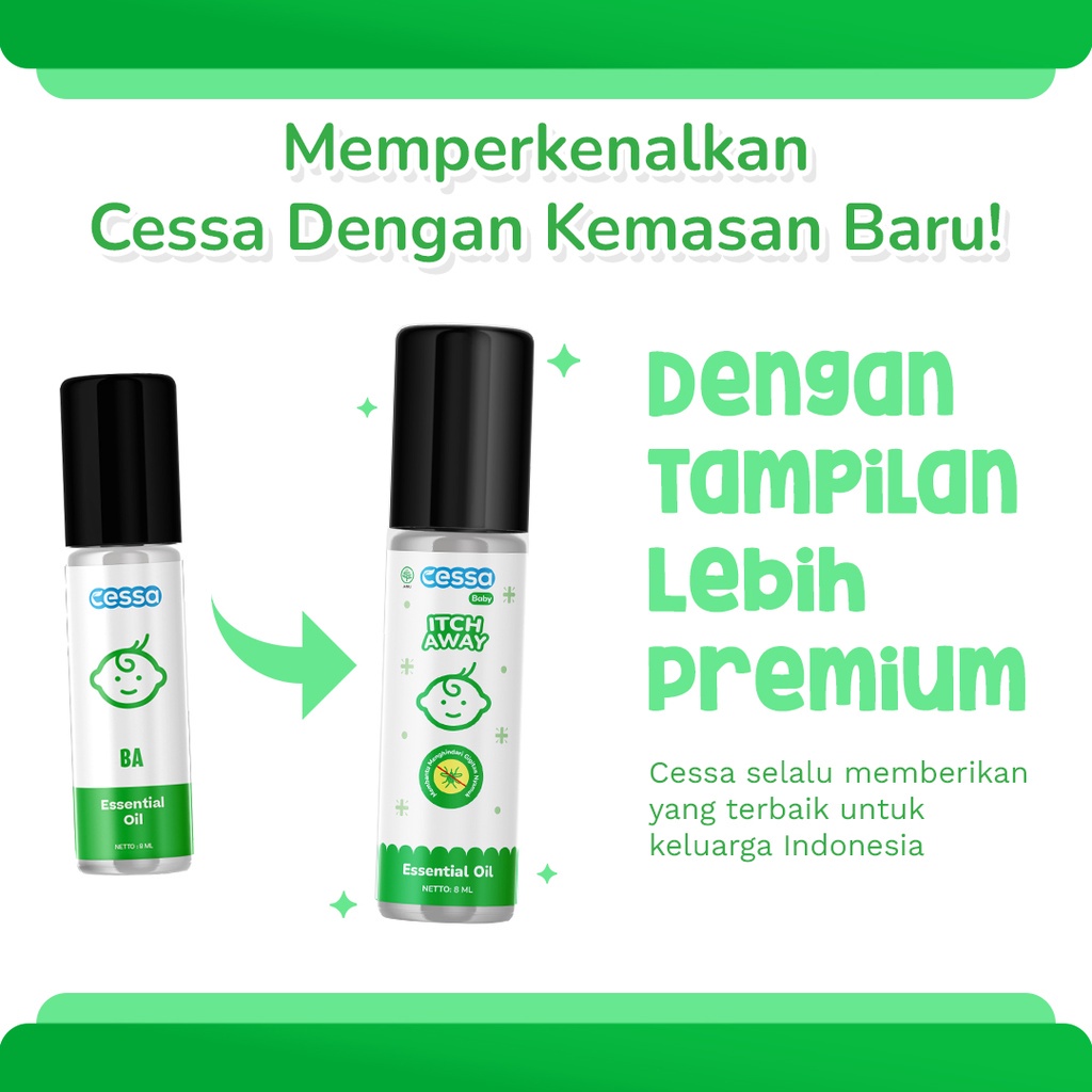CESSA Itch Away Merupakan Essential Oil yang khusus diracik untuk menjaga bayi dari gigitan nyamuk seperti nyamuk Aedes aegypti yang bisa menyebabkan demam berdarah. Essential Oil berasal dari tumbuhan yang diekstraksi esensi atau manfaat terbaik dari tumbuhan tersebut dan diracik dengan berbagai kandungan bahan alami yang sangat aman untuk bayi, Dengan 100% Aroma Pure Therapeutic Grade Essential Oil akan membantu menjaga bayi dari gigitan nyamuk,