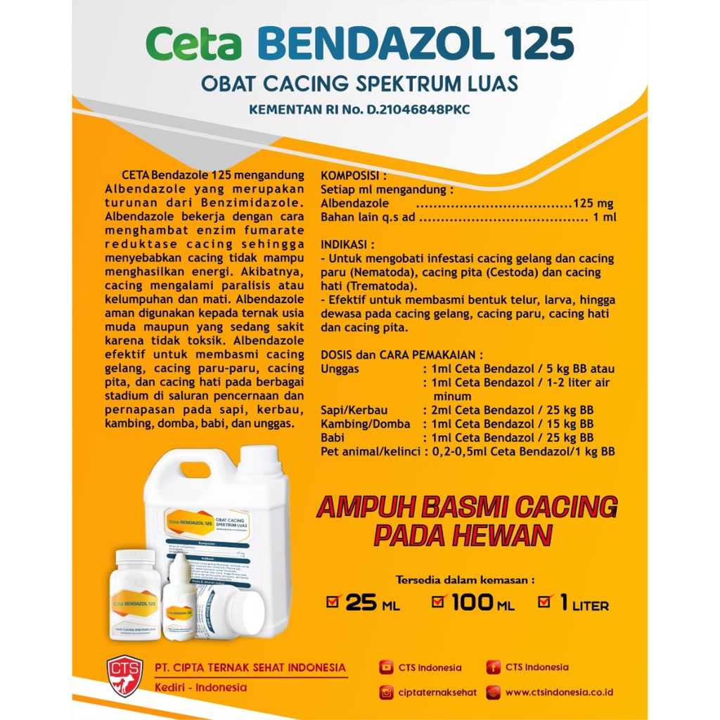 Detail CETA BENDAZOL 125 100 ml | Obat Cacing Pada Ternak Sapi Kerbau Kambing Domba Ayam | Apoternak