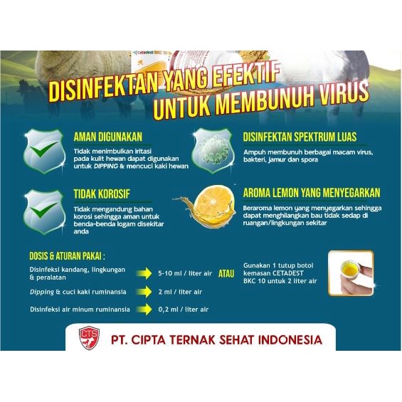 Detail CETADEST BKC 100 ml - Desinfektan Ampuh Aman Spektrum Luas Ayam Sapi Anjing Kambing dan Domba