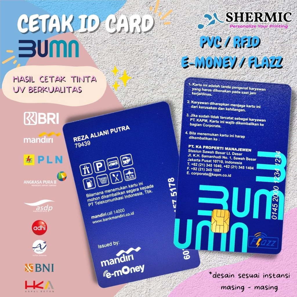 Cetak ID card, Name Tag design BUMN Bisa untuk kartu etoll (Emoney Mandiri / Flazz Gen 2 BCA / Tapcash BNI / Brizzi BRI ), ID CARD PVC dan RFID