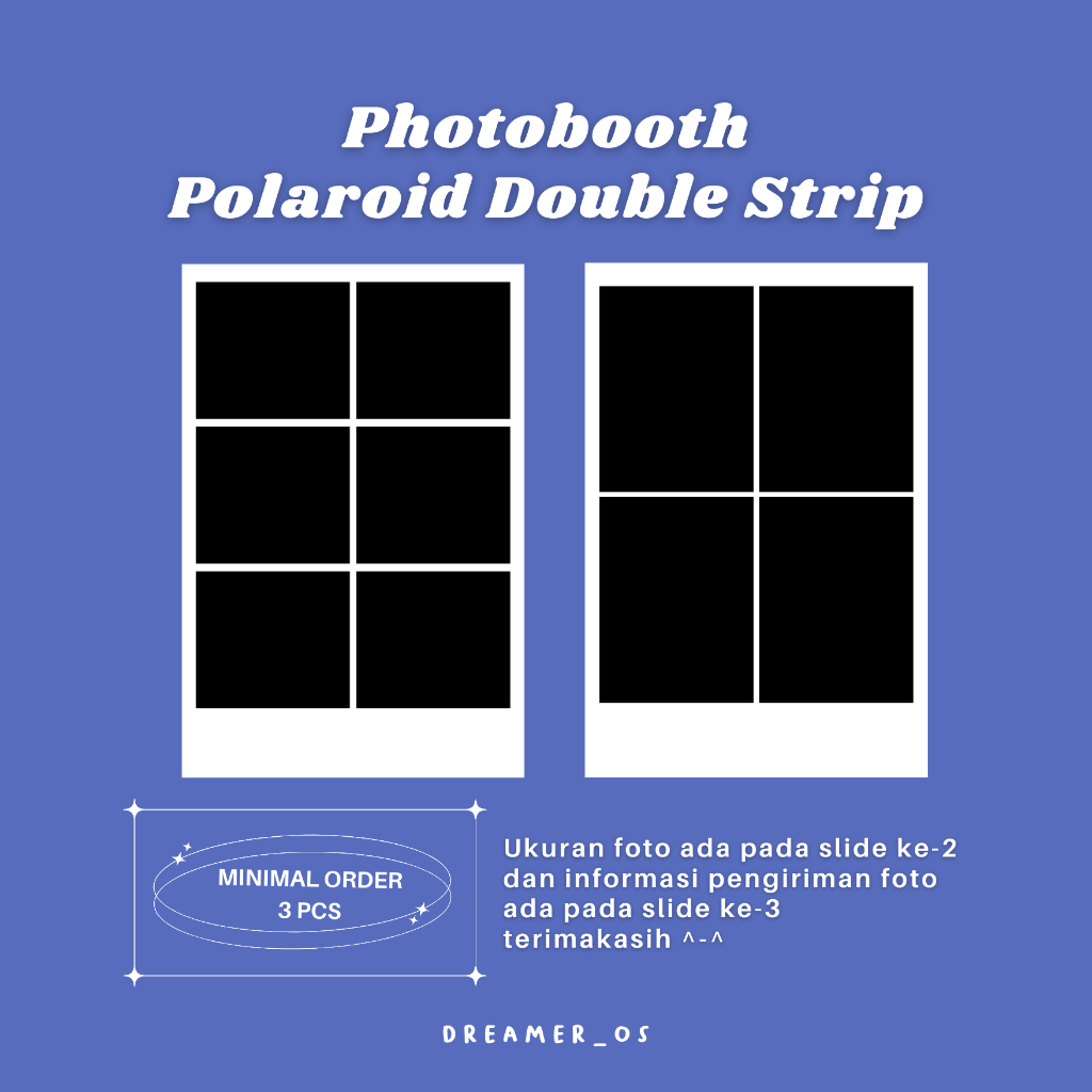 Kami menyediakan 2 jenis doublestrip yaitu : double strip 4 : bisa isi 4 foto (minimal order 3pcs) double strip 6 : bisa isi 6 foto (minimal order 3pcs) *kelipatan 3 : 3,6,9,12,15...*