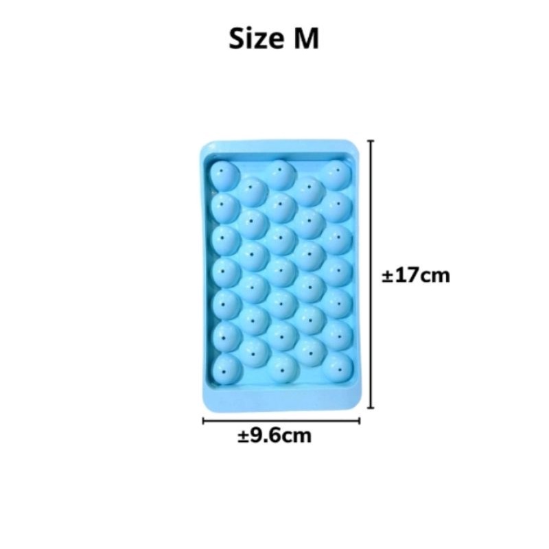 Cetakan es batu 33 bulatan ini memiliki desain yang unik. Terdiri dari 2 bagian (atas & bawah),sehingga cetakan berbentuk bulat seperti telur dan terjada higienis,serta memiliki slot yang cukup banyak.Memiliki area pegangan yang luas sehingga mudah digunakan untuk mengeluarkan es dari cetakan. Dapat digunakan unutk membuat es batu,cokelat,agar-agar,pudding,jelly,dll. Terbuat dari bahan food grade yang aman untuk dikonsumsi.