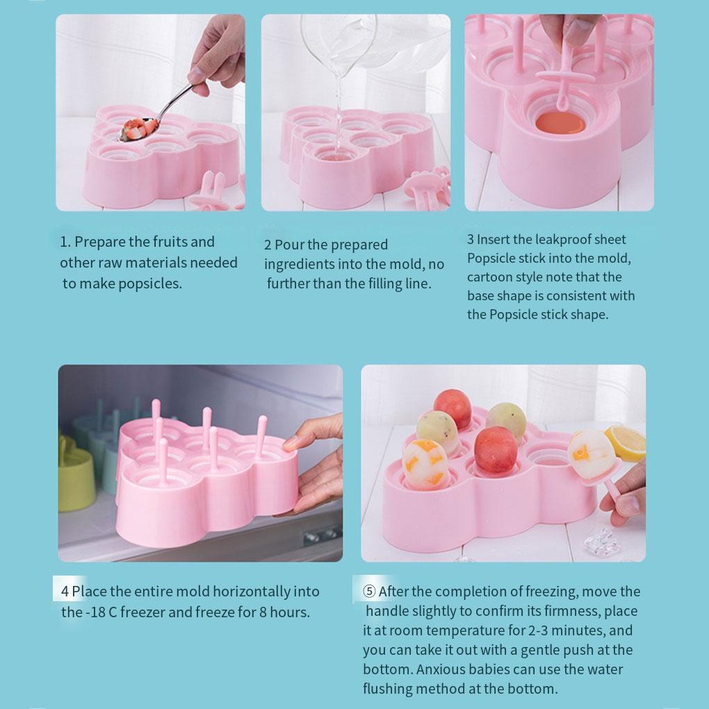 Mudah digunakan: Cukup tambahkan jus, selai, milkshake, yogurt, atau campuran susu ke cetakan es, lalu letakkan di lemari es.