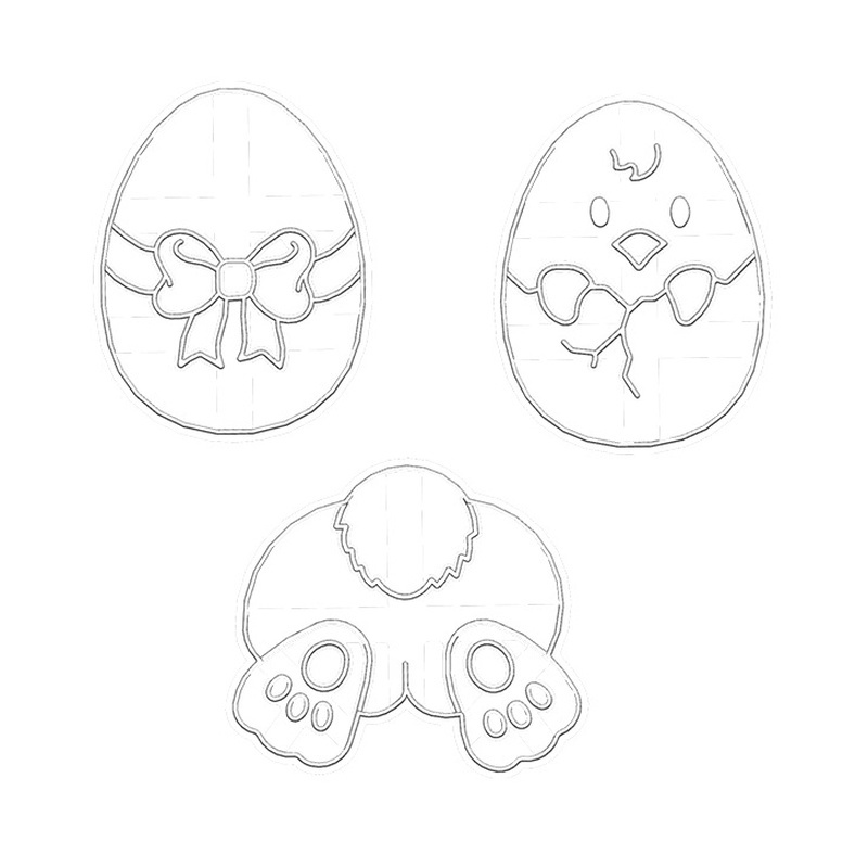 Spesifikasi Bahan: plastik Ukuran: telur Paskah 6.3*8.1 cm, ayam 6.3*8.1 cm, pantat kelinci 7.4*8.1 cm Warna: Putih Bentuk: Tidak teratur Kategori: Cetakan Biskuit Tujuan: memanggang Gaya: modern dan sederhana