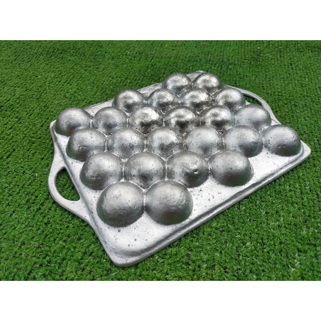 Deskripsi produk Bahan baku : aluminium system cor Jumlah lubang kue : 24 lubang Ukuran cetakan Panjang : 20,5cm Lebar : 19cm Tinggi cetakan : 1,9cm Ukuran kue Diameter : 3,5cm Tinggi : 1,7cm Cetakan dapat digunakan untuk mencetak kue takoyaki, lumpur mini, cubit, apem mini, martabak super mini, telur panggang. Panas, Gurih, Kenyal & Lezatnya Kue