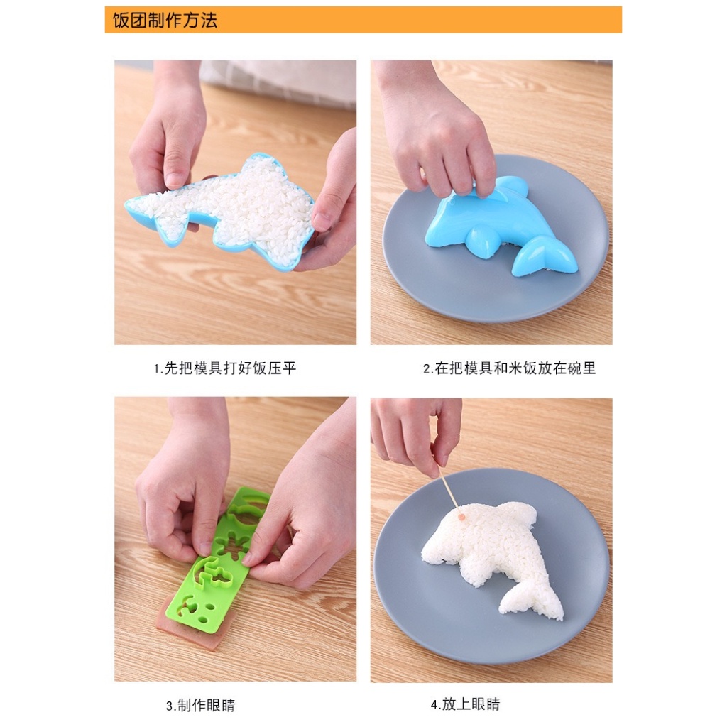Cetakan Nasi Bento Set Bentuk Kartun Kelinci Lumba-Lumba Set isi 4pcs