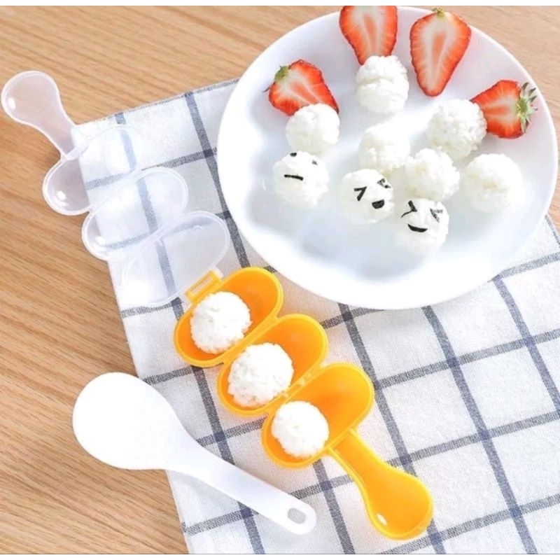 HARGA PER 1 PCS BERUPA 1 Buah Cetakan bento bola lucu unik isi 3 Tempat + 1 Buah Centong Mini