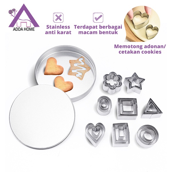Perlengkapan Rumah > Peralatan Dapur > Perlengkapan Dapur Lainnya > Cetakan Pemotong Kue Biskuit Cookies Bahan Stainless Steel Aneka Bentuk Persegi Bulat Hati Bintang Bunga
