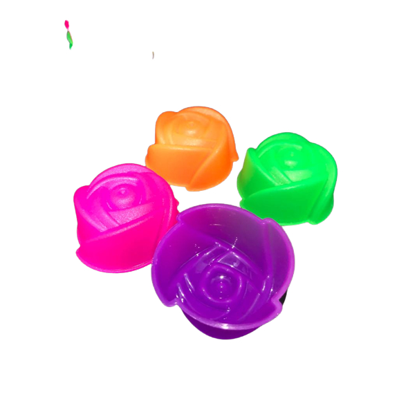 Bahan : Plastik ( Tebal ) Diameter : 7cm Tinggi : 3.5cm Warna : Hijau, Oren, Pink, Ungu Isi : 12 pcs
