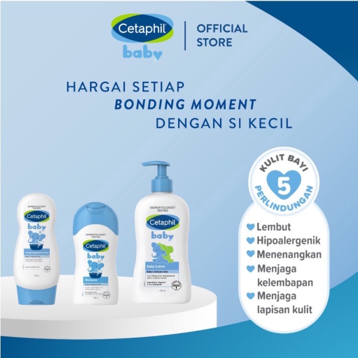 Cetaphil Baby Moisturizing Bath & Wash adalah pembersih dengan 1/3 losion yang diperkaya dengan lidah buaya. Cetaphil Baby Moisturizing Bath & Wash mampu membersihkan dan membantu melembapkan kulit lembut bayi. Cetaphil Baby Moisturizing Bath & Wash lembut untuk bayi baru lahir dan bayi dengan kulit yang sensitif. Teruji klinis dapat membersihkan dan melembapkan kulit bayi. Didesain khusus untuk digunakan ke seluruh tubuh setiap hari. Hypoallergenic, pH seimbang, dan teruji secara dermatologis. Cetaphil Baby Moisturizing Bath & Wash mengandung aloe vera yang dapat membantu menenangkan kulit bayi, serta Almond Oil yang membantu melembapkan kulit bayi.