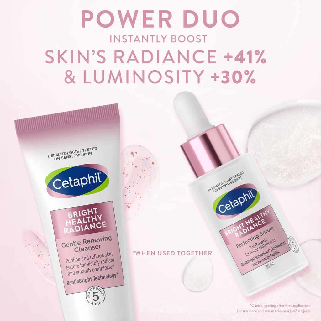 Cetaphil Bright Healthy Radiance Gentle Renewing Cleanser lebih dari sekadar membersihkan: ini adalah pembersih 3in1 multifungsi yang mencerahkan, mengelupas, dan memurnikan kulit dalam satu langkah. Ini mengandung GentleBright Technology ™ dan vitamin E melepaskan manik-manik jojoba yang meleleh menjadi busa lembut berbusa pada kulit untuk membersihkan kulit mati, kotoran dan polusi. Pembersih wajah yang nyaman ini menjaga hidrasi kulit dan tidak membuat kulit kering. Termurnikan dan bersih, kulit tampak lebih bercahaya, rata dan bercahaya. Terlebih lagi, ini melindungi dari 5 tanda sensitivitas kulit termasuk kekeringan, iritasi, kekasaran, sesak, dan penghalang kulit yang melemah.