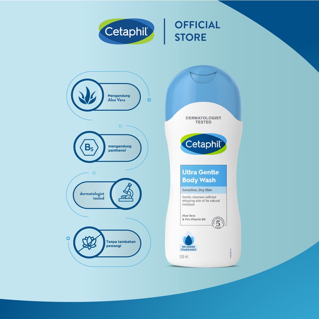 Cetaphil Ultra Gentle Body Wash adalah sabun mandi badan yang cocok untuk semua jenis kulit bahkan yang sensitif sekalipun. Formula hypoallergenic yang lembut dan efektif mampu membersihkan sekaligus kandungan aloe vera dan vitamin B5 yang memberikan nutrisi pada kulit untuk menjaga kelembapan kulit Cetaphil Ultra Gentle Body Wash teruji klinis efektif membantu melembapkan dan membersihkan badan. Cocok untuk segala jenis kulit bahkan yang sensitif sekalipun. Cetaphil Ultra Gentle Body Wash mengandung: Aloe vera vitamin B5 dan vitamin E yang bertujuan untuk membantu menjaga kelembapan dan memberikan nutrisi pada kulit.