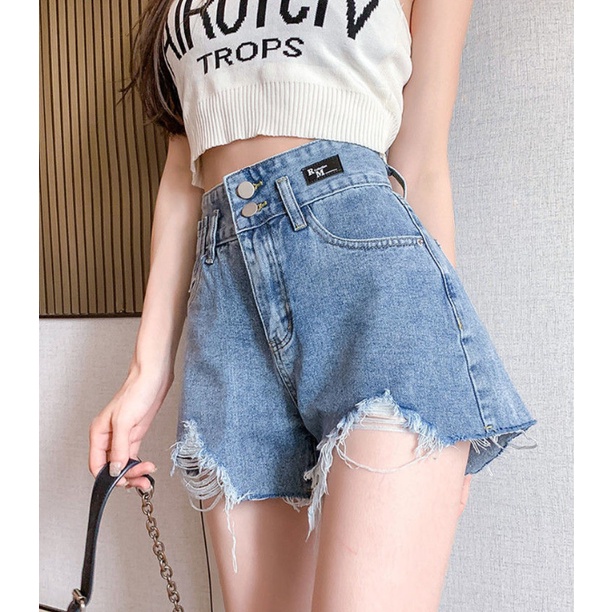 [Cewek_id]Celana jeans pendek wanita korean style highwaist hotpants dewasa premium ripped jumbo denim kekinian ootd