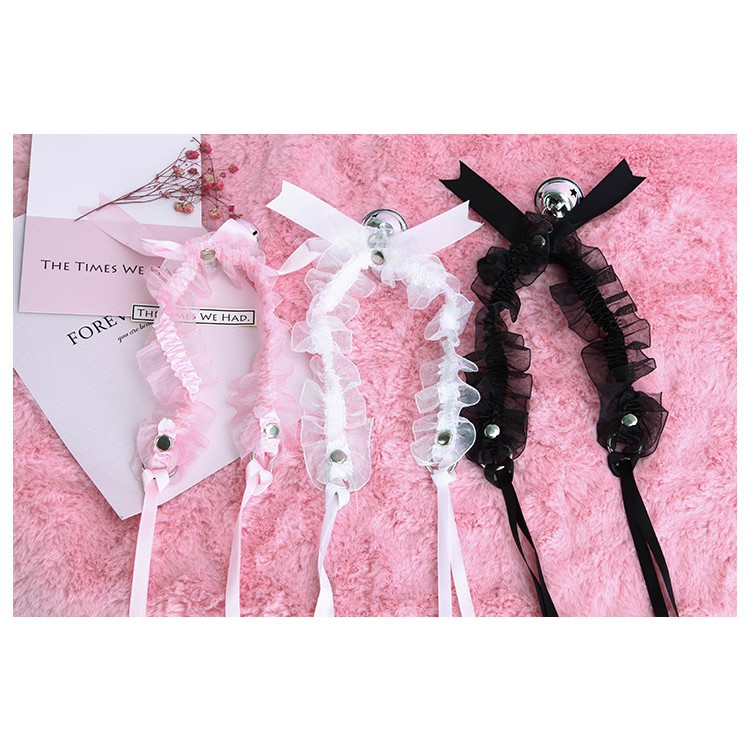 Detail CH-07 kalung choker bell lonceng besar pita renda lace nekomimi kucing cat chocker jepang korea ribb