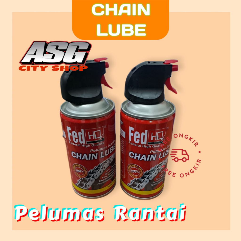 FED HQ Chain Lube adalah carian pelumas yang efektif melumasi dan membersihkan rantai motor maupun sepeda amda.FED HQ Chain lube memiliki komposisi zat adictive yang dapat meningkatkan putaran rantai sehingga rantai motor maupun sepeda anda dapat bekerja lebih maximal.Fed HQ chain lube dapat mencegah karat dan korosi sehinga memperpanjang masa pemakaian rantai motor atau sepeda anda