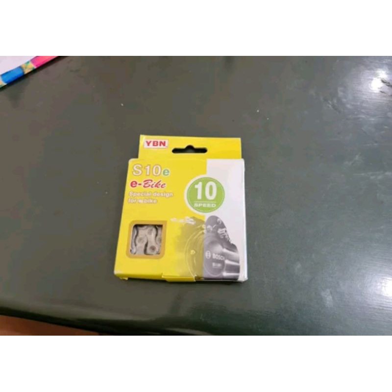 . new original 100% . chain ybn s10e . premium quality . lebih kuat dan presisi ( karena rekomendasi for e bikes ) . sudah termasuk missink link ( sambungan rantai ) . warna croom