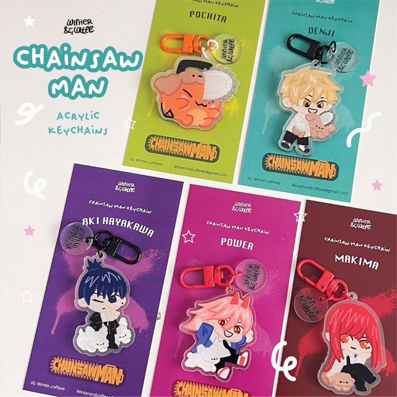 Decorate your bag or other stuff with these special edition CHAINSAW MAN 🪚 keychain collection from Winter Coffeee! . details: size: appr. 5-7 cm double sided print double sided acrylic (please understand if there is any difference for the thickness of acrylic in range 1-2mm) . original design by: winter.coffeee