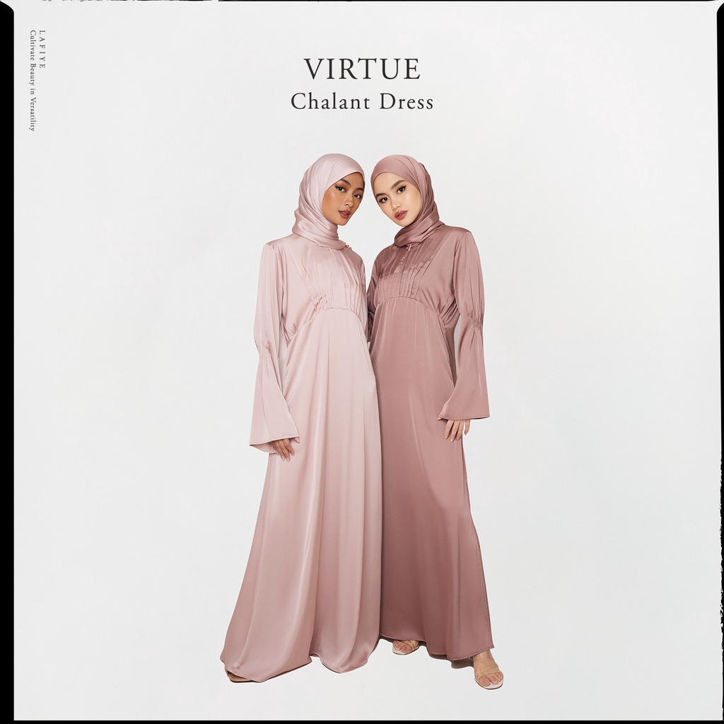 The portrayal of unconditionally genuine faith is contained in these ravishing details on Chalant Dress; 5 pleats that resonate with 5 Pillars of Faith that garnish the arched waist detailings, with the series’ iconic sleeves.