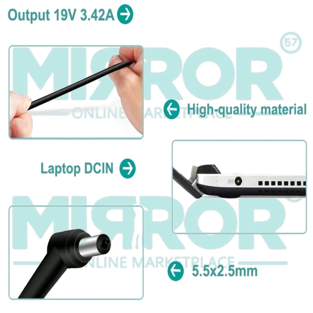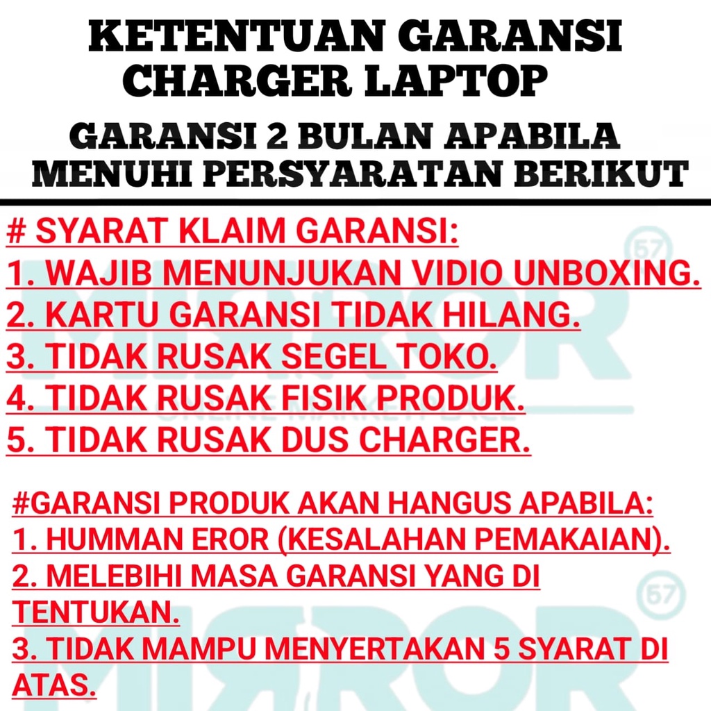 Input: AC 100-240V, 1.5A, 50-60Hz Output: DC 19V 3.42A Power: 65W Connecter: 5.5MM*2.5MM Garansi: 2 Bulan (Tidak Rusak Segel, Tidak Rusak Fisik & Tidak Rusak Dus Charger)