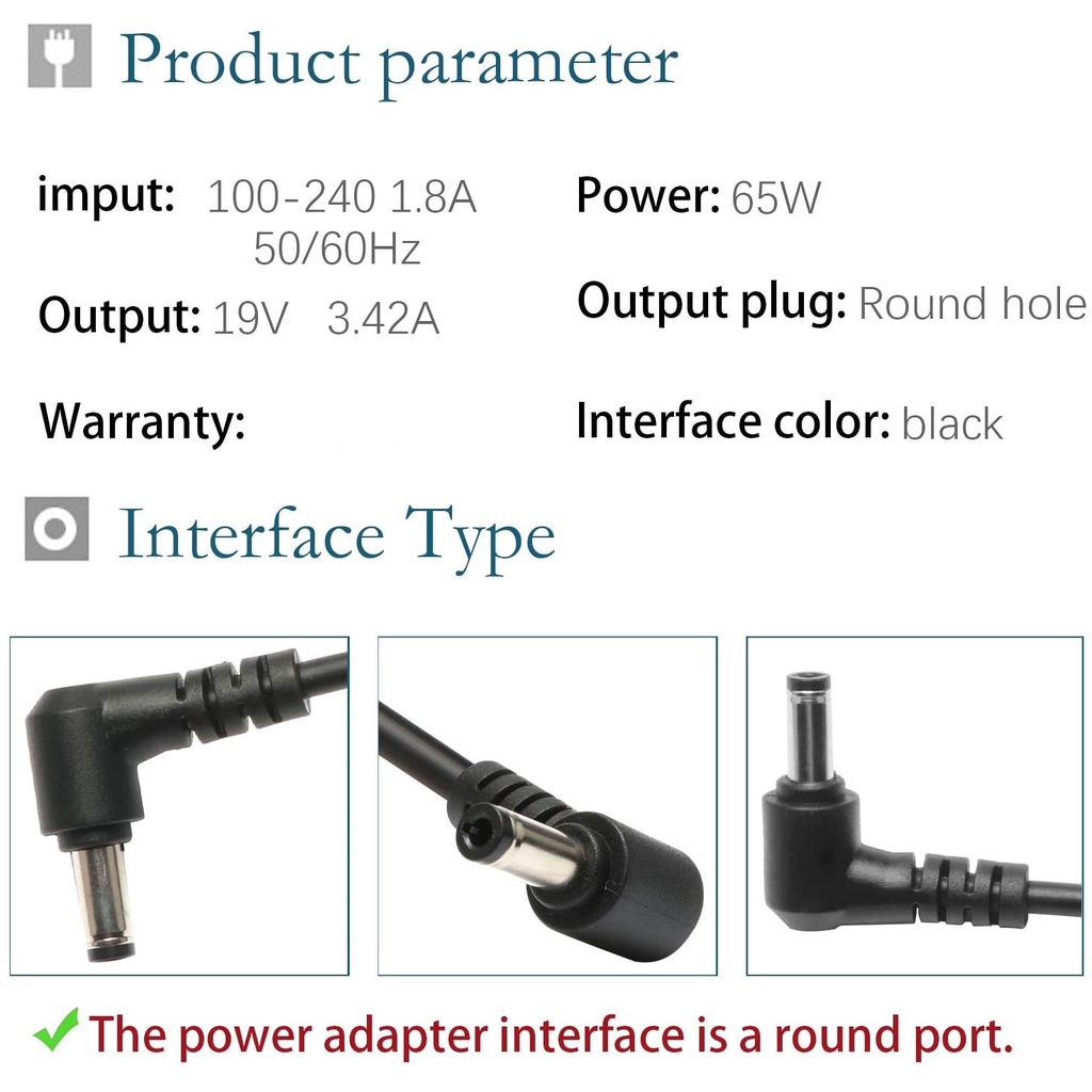 Compatible With: Asus AD887320 AD887020 ADP-65DW-B ADP-65AW-A ADP-65GD B ADP-65HB BB ADP-65JH BB ADP-65NH A EXA0703YH EXA1203YH EXA1208EH PA-1650-01 PA-1650-66 PA-1650-78 PA-1650-93 SADP-65KB B SADP-65NB AB SADP-65NB BB K43ST