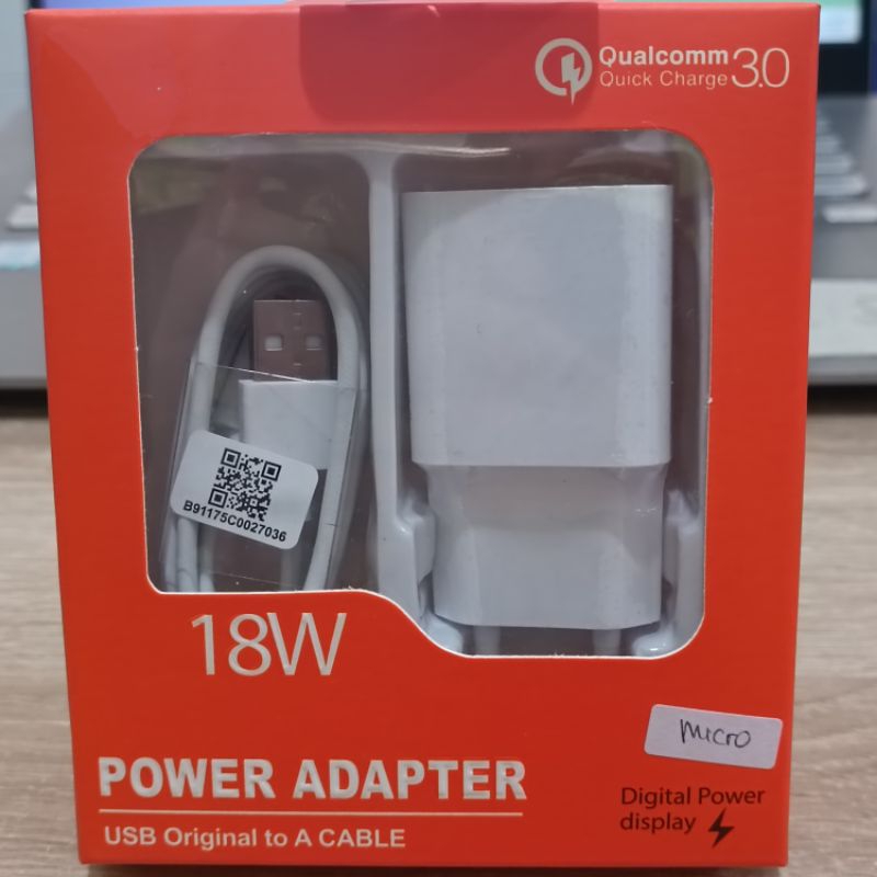 Model : MDY-08-EI Input : 100-240V ~ 50/60Hz 0.5A Output : 5V 2.5A / 9V 2A / 12V 1.5A Kabel Micro USB Support Fast Charging