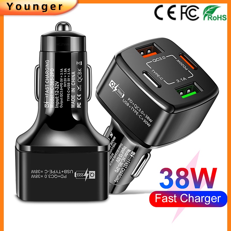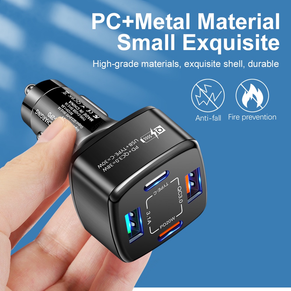 Handphone & Aksesoris > Kabel, Charger, & Konverter > Travel Adaptor > Charger Mobil 38W PD+QC3.0 Fast Charging 18W 4port Adaptor PD Dual USB Type-C Di Mobil Untuk i-Phone Android Type C