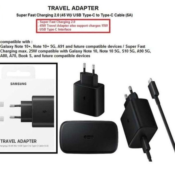 Spefikasi -Super Fast Charging 2.0 - Model : EP-TA845 -PD 3.0 PPS 45W - Usb Type-C to Type-C Cable Include - package : Retail box Pack
