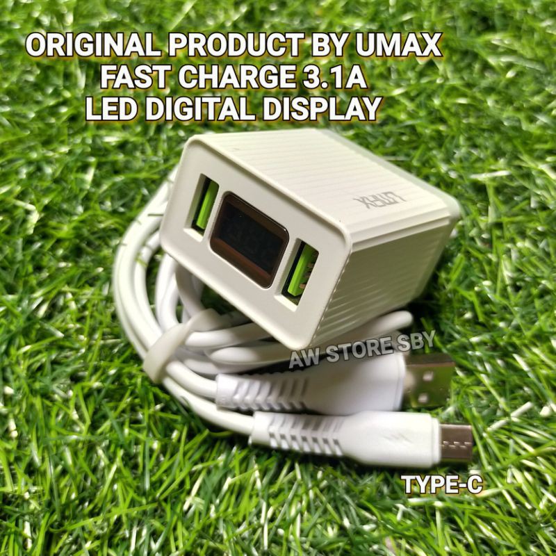 Detail CHARGER USB TYPE C FAST CHARGE 3.1A DIGITAL LED ORIGINAL PRODUCT U-MAX O2