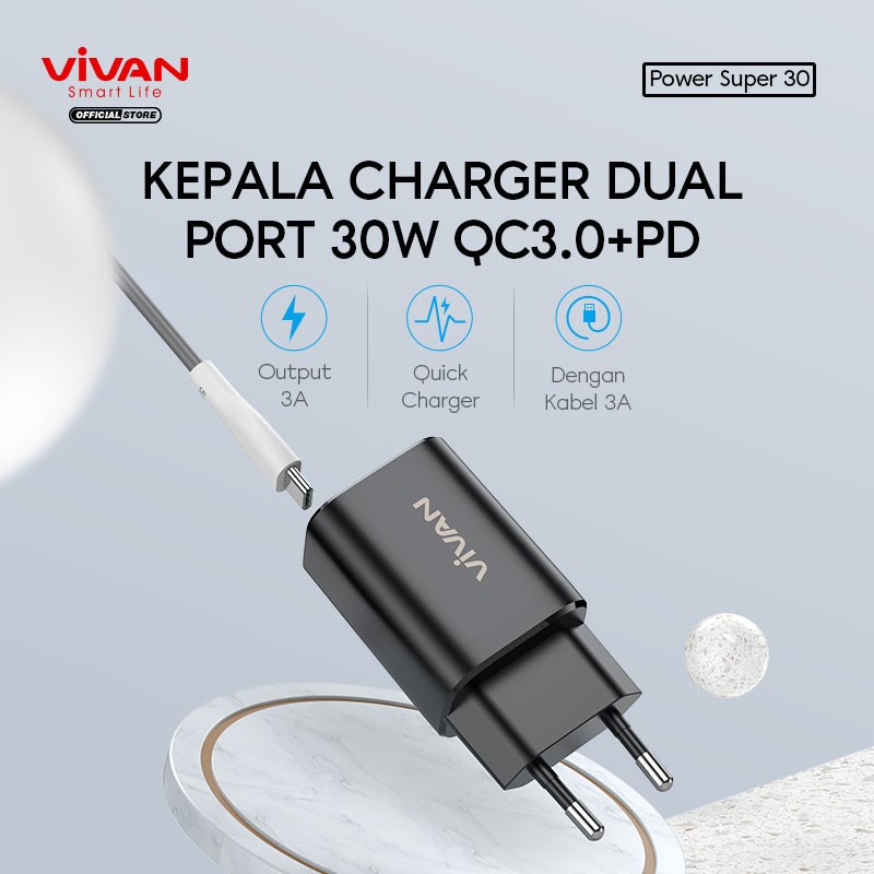 Detail CHARGER VIVAN FAST CHARGING POWER SUPER 30W 3A QUICK CHARGE
