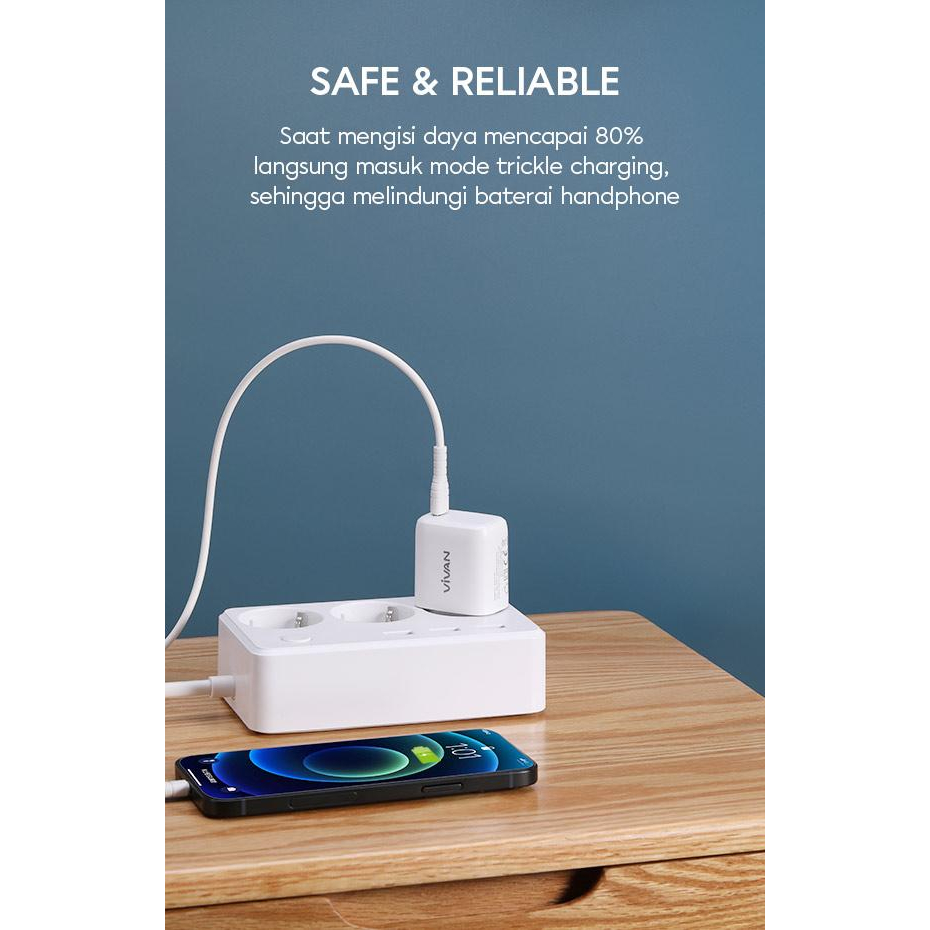 Handphone & Aksesoris > Kabel, Charger, & Konverter > Charger > Charger VIVAN Power 20 20W 3A Quick Charging Fast Charging QC 4.0 + Type C Port Smart Protection - Garansi Resmi 1 Tahun