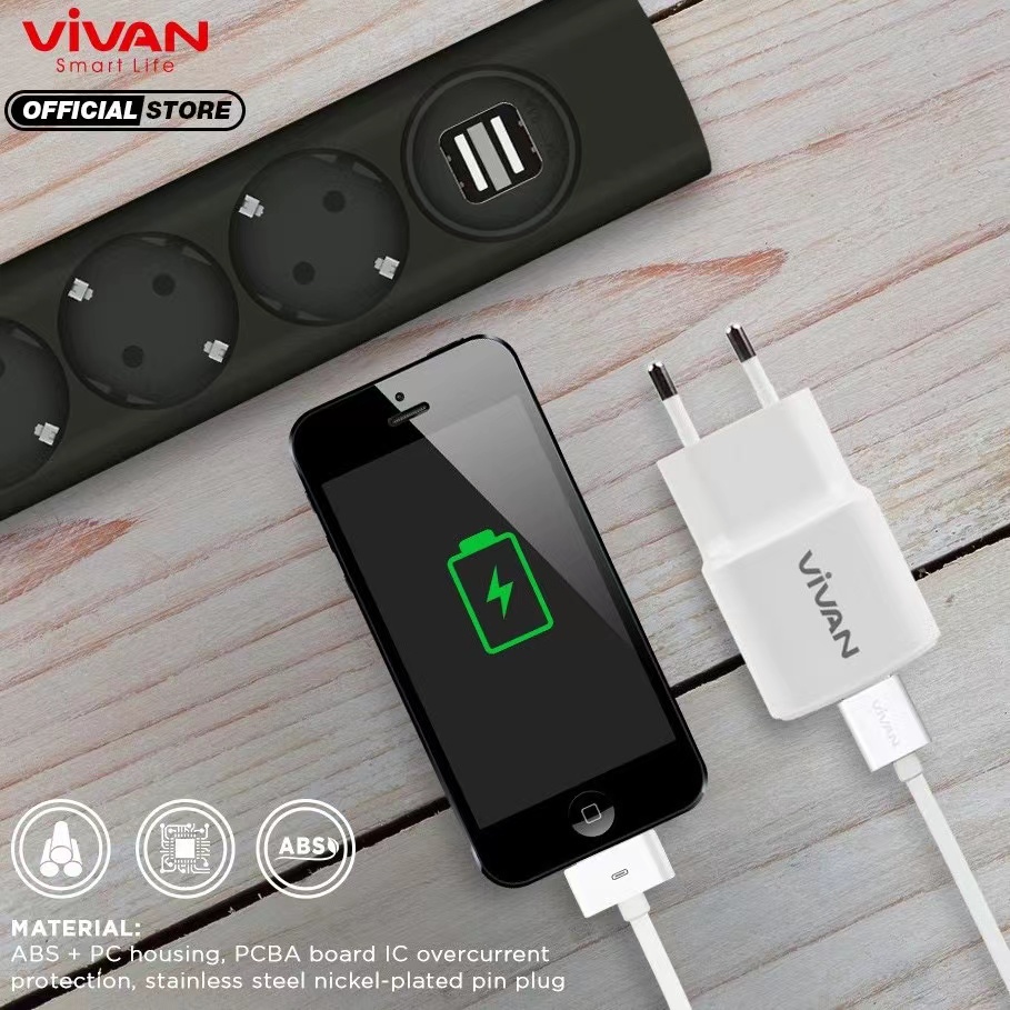 Spesifikasi: - Brand: Vivan - Model: Power oval - Port: Single USB - Input: 100~240V/ 50~60Hz - Output: 5V 2A - Suhu saat digunakan: 0-40 degrees Celsius - Kelembaban saat digunakan: 35-85% RH