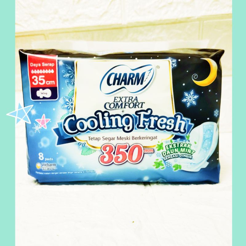 pembalut wanita 35 cm wing merek Charm Extra comfort cooling fresh isi 8 pads