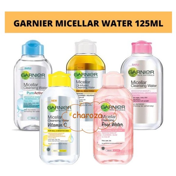 > Garnier Micellar Water Pink 125ml Pembersih wajah satu langkah untuk semua jenis kulit : ✔Dengan kandungan micelles membersihjan dan mengangkat kotoran serta makeup secara maksimal namun terasa lembut di wajah. ✔Dapat mengangkat makeup yang waterproof sekalipun ✔Cocok untuk semua jenis kulit, bahkan kulit sensitif sekalipun ✔Tidak perlu di bilas