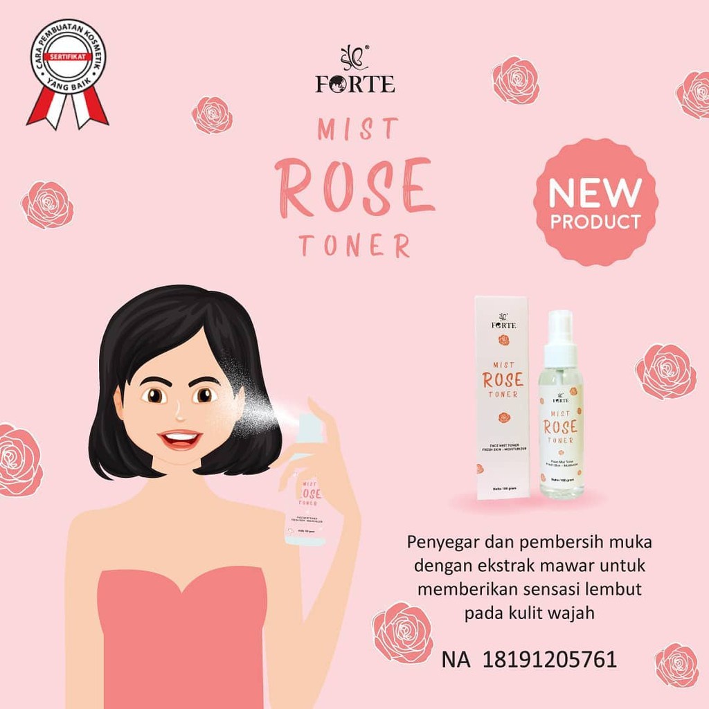 ☘️ CHAROZA ☘️ SYB Forte Face Mist || TONER 100ml No.BPOM dan logo halal tertera di kemasan EXP date : (tertera dikemasan) Netto :100ml ................................................................................................... > Forte Mist Rose Toner 100ml Rose Toner dengan kandungan ekstrak mawar berfungsi sebagai penyegar dan pembersih muka serta memberikan sensasi lembut pada kulit wajah.