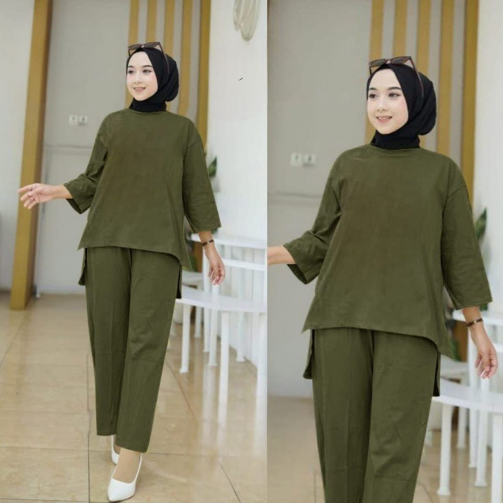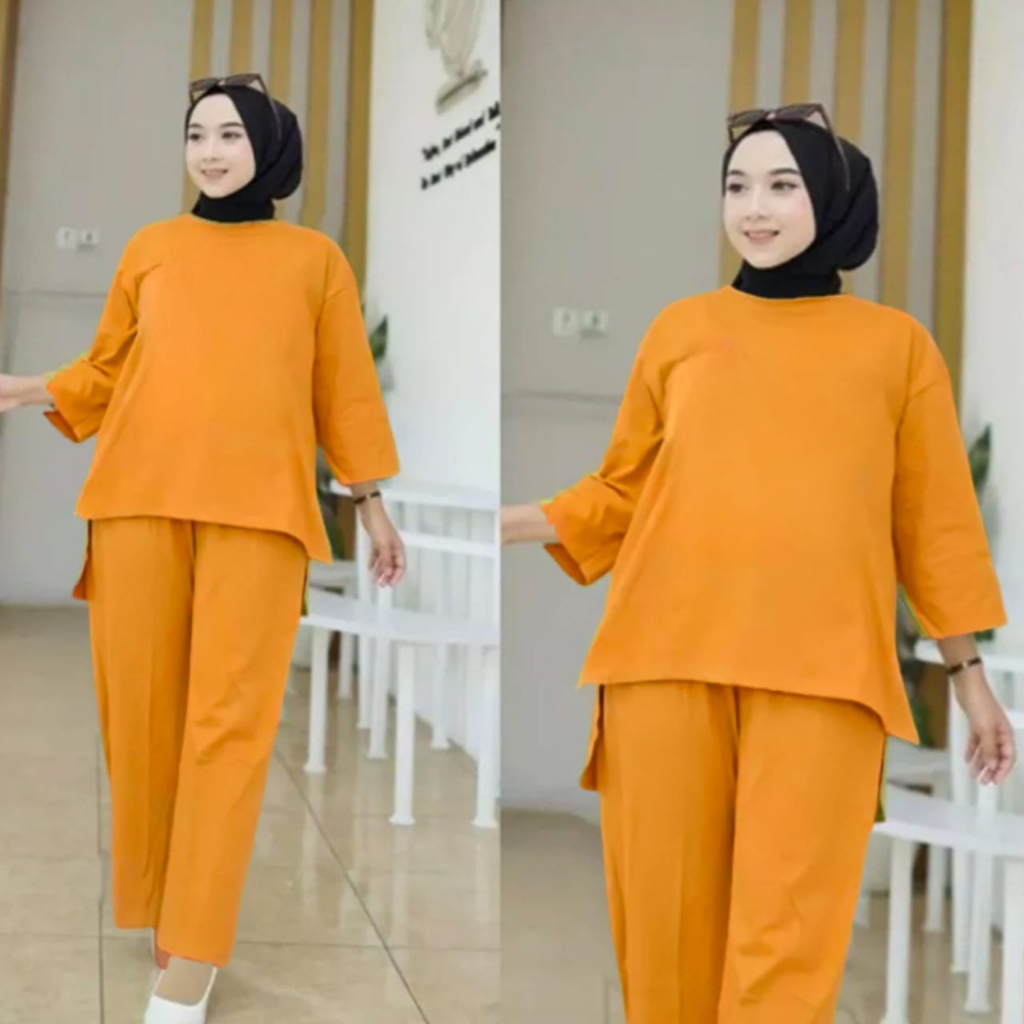 Fashion Muslim > Dress Muslim > Set Baju Muslim > Charyatink - Setelan Tunik Polos Baju Hijab dewasa wanita sablon polycaton premium BAHAN BEBYTERRY Ukuran M L XL