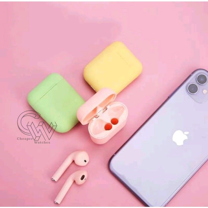 i12 macaron tws Air pods handsfree bluetooth wireless extra bass auto pop up for ios android