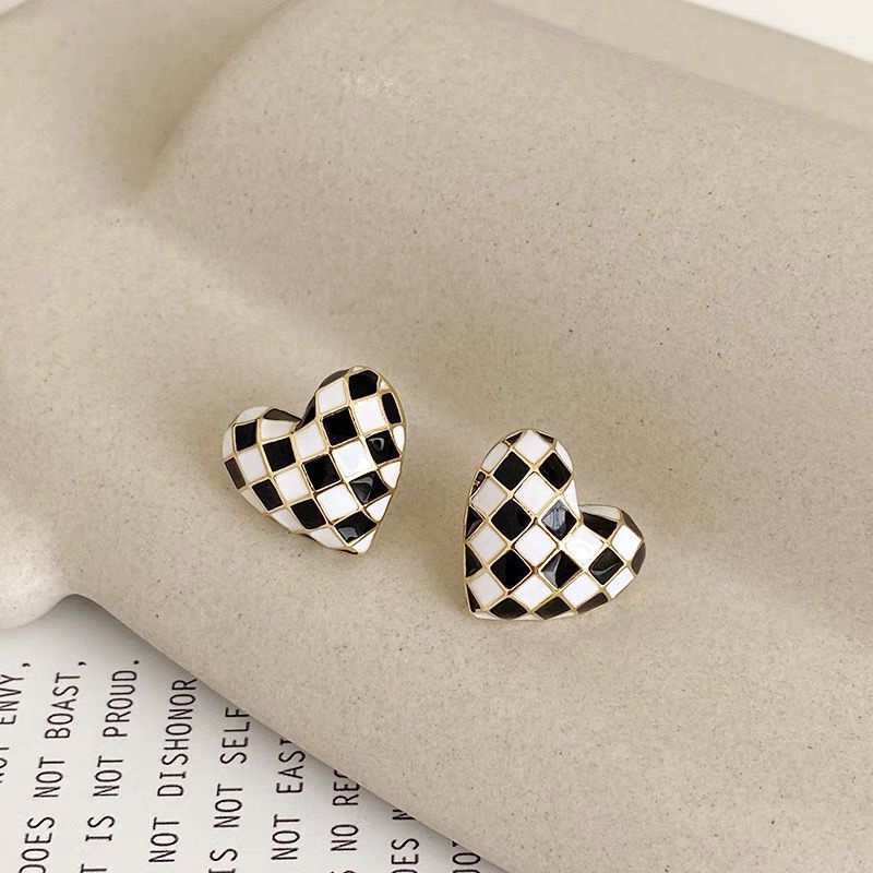 Detail Checkerboard Cinta Hati Anting Korea Kecil Dongeng Manis Anting Gaya Mori ins Gaya Anting Perempuan Gaya Baru