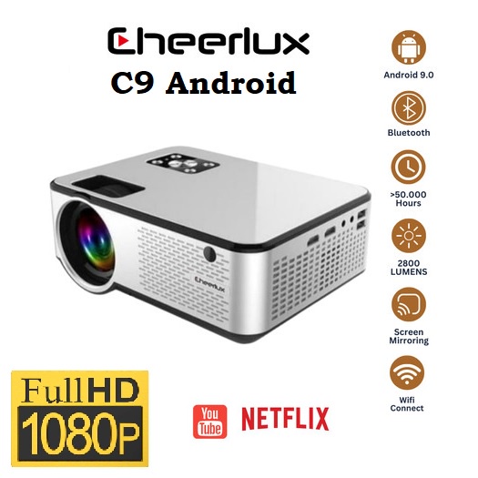 Detail CHEERLUX C9 Android WiFi TV Tuner - LED Projector 2800 Lumens 1080P - Proyektor Android CHEERLUX