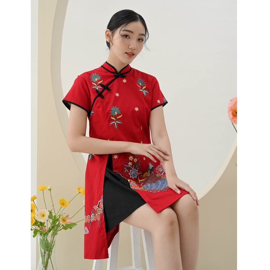 Cheongsam Batik 185 BBC Red/ Dress Batik Wanita/ Batik Red/ Dress Red/ Baju Imlek/ Dress Couple