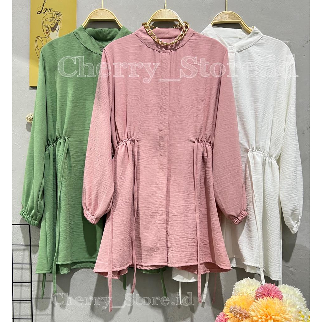 atasan kemeja model serut samping dgn bahan airflow crinkle bahan adem, jatuh dan flowy saat dipakai tidak gampang lecek maupun kusut bisa dipakai bumil maupun busui allsize fit to XL