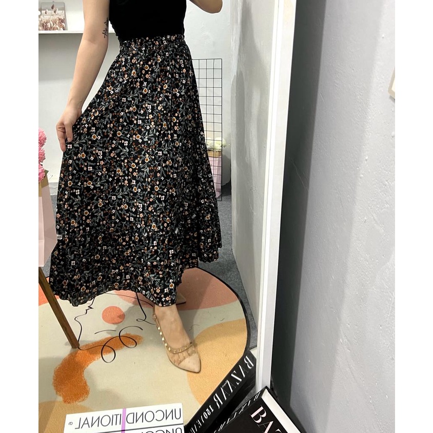 rok plisket rempel 2 susun motif bunga printing dgn bahan hyget premium -bahan tebal -adem -tidak panas -tidak gatal -tidak menerawang bagian pinggang full karet allsize fit S to XL