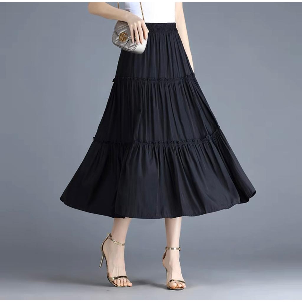 Cherry_ruffle skirt 3 susun rok rempel wanita dgn bahan hyget premium bahan tebal, adem dan tidak menerawang. sangat nyaman dipakai Bagian pinggang full karet model mayung dibagian bawah bahan jatuh dan flowy saat dipakai