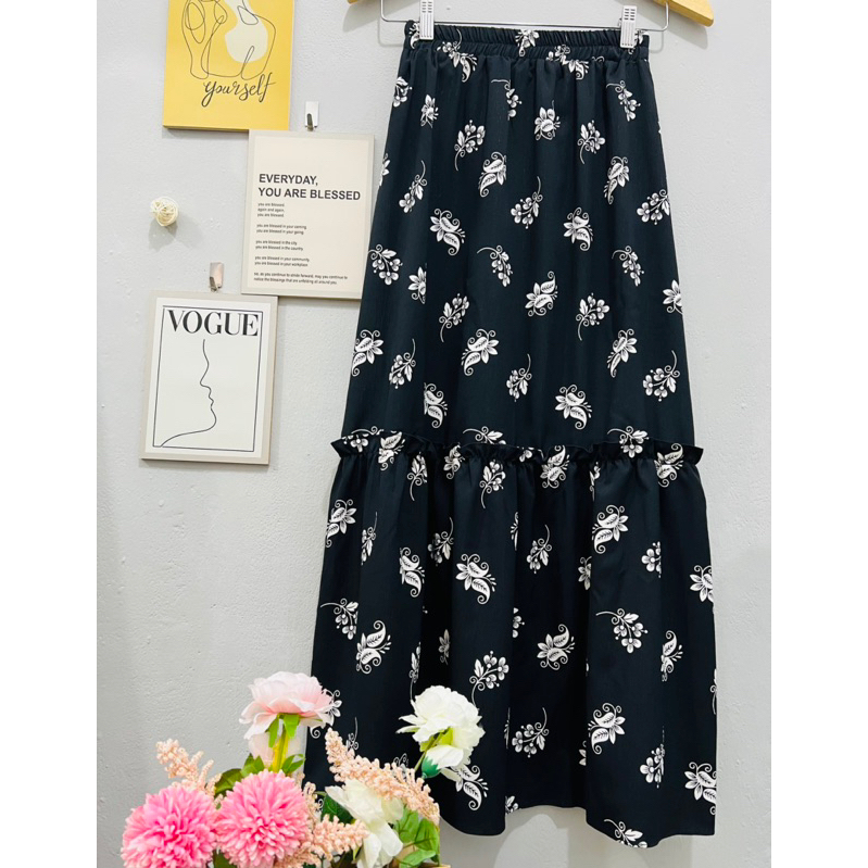 Cherry_ Skirt flower korean style dgn bahan cey crinkle motif bunga vintage sangat cocok dipakai di segala acara 😍 adem, tidak panas sama sekali bahan tidak tipis, dan juga tidak tebal dipakai kelihatan flowy, dan jatuh tidak menerawang, bagian pinggang full karet muat sampai bb 75kg