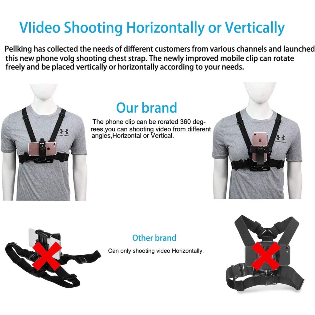Isi Dalam Paket: 1 Chest Harness Strap 1 Phone Holder 1 Mount Adapter 1 Base Mount 1 J Hook