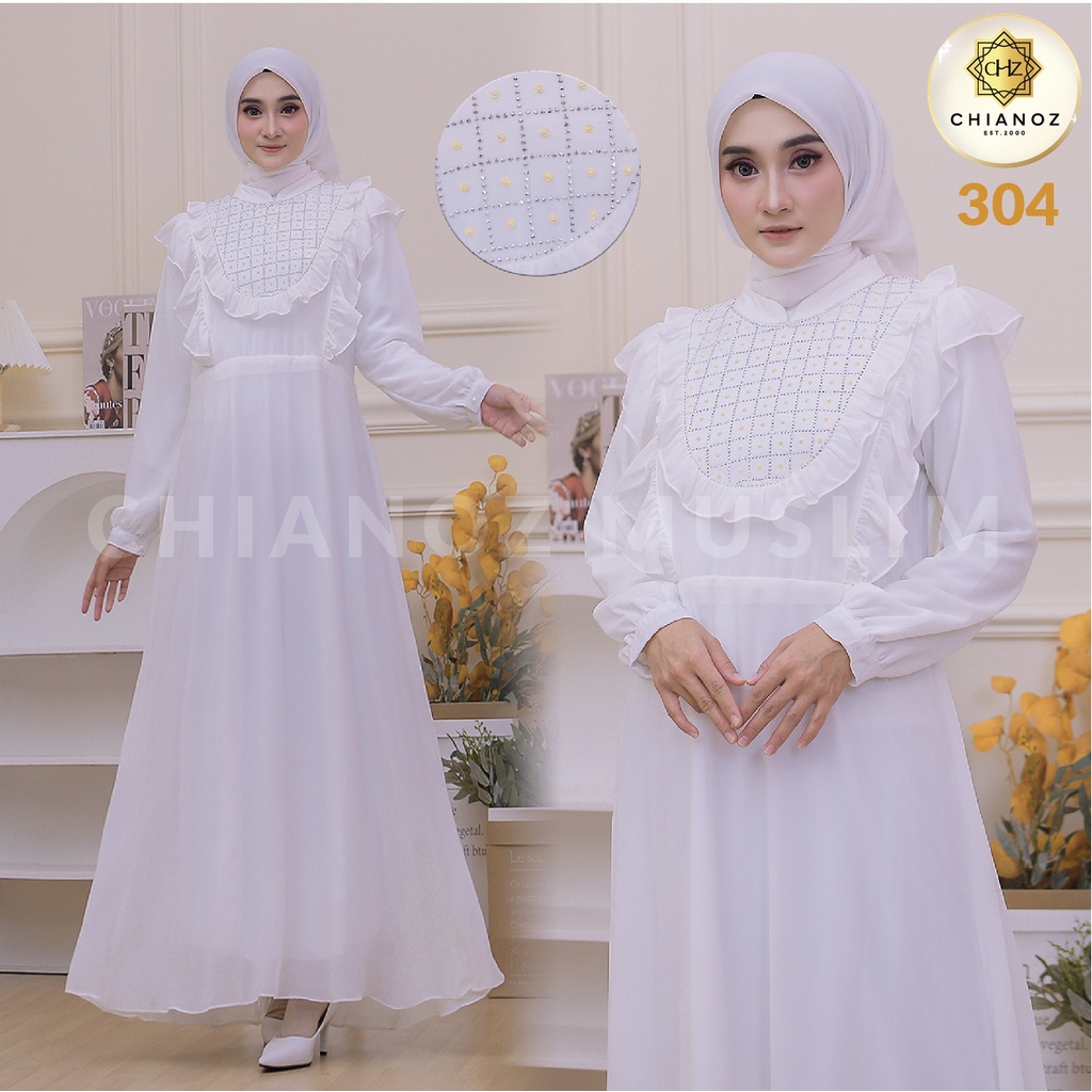 CHIANOZ Gamis Hitam Mewah Monika Dress Brukat Renda Baju Lebaran Umroh Haji Manasik Pesta Akad 301 304