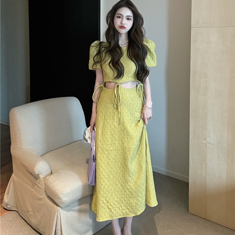 Detail Chic high waist retro serut ayunan rok siswa musim panas perempuan 2022 baru versi Korea rok mid-len