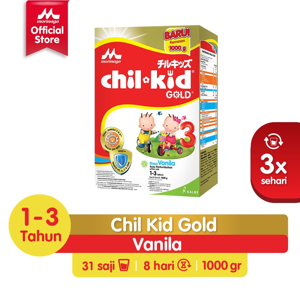 Morinaga Chil Kid Gold susu pertumbuhan untuk Si Kecil di usia 1-3 tahun dengan inovasi unggulan berupa sinergi nutrisi untuk mendukung Kecerdasan Multitalenta dan Pertahanan Tubuh Ganda serta memiliki Formula yang Disempurnakan untuk dukung Si Kecil meraih mimpi besarnya sejak dini karena #WaktuTakBisaKembali.