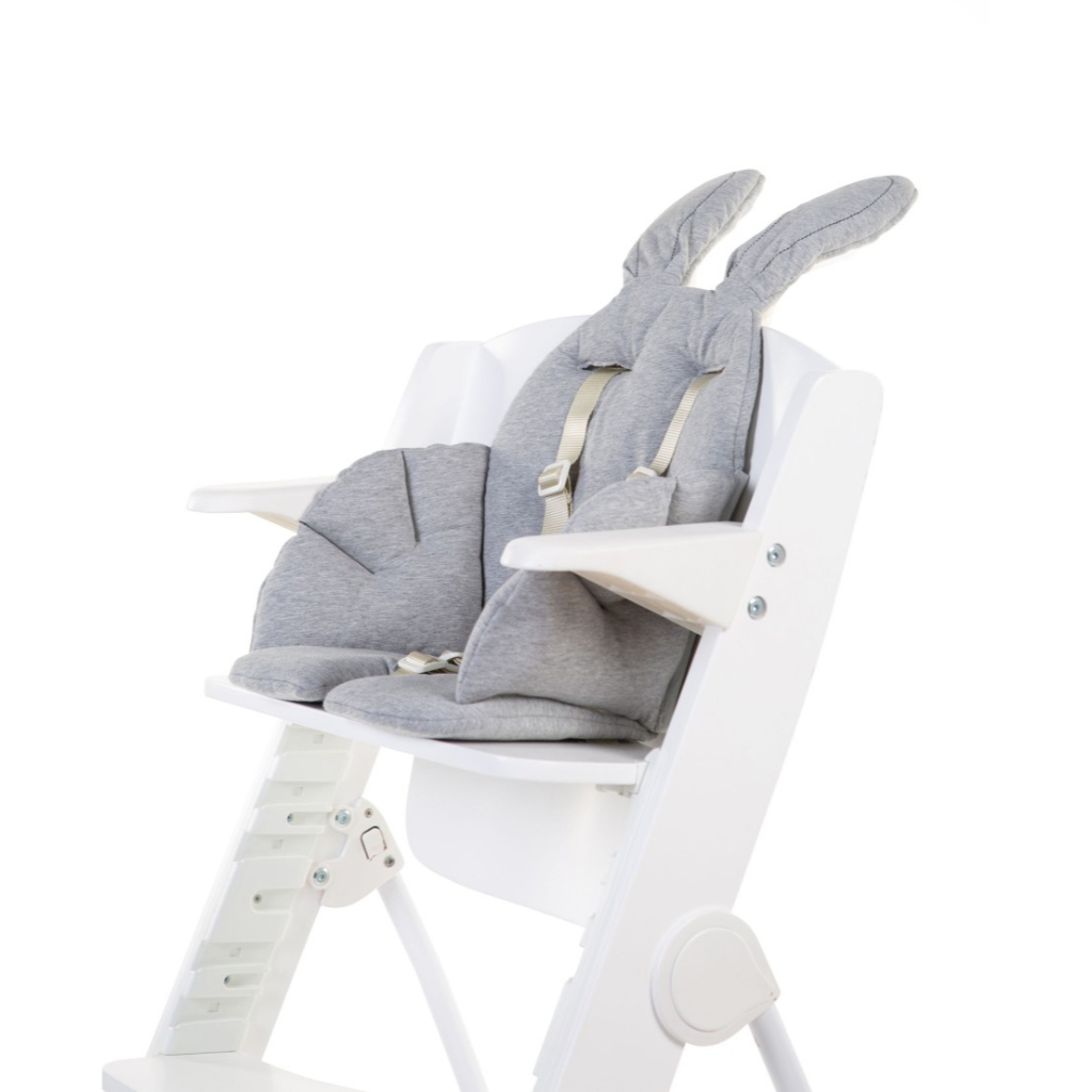 Universal seat reducer cushion with attractive design Turns your little one into a cute bunny Suitable for all our high chairs Can also be used in a bouncer, car seat or stroller Provided with openings to put safety belts through